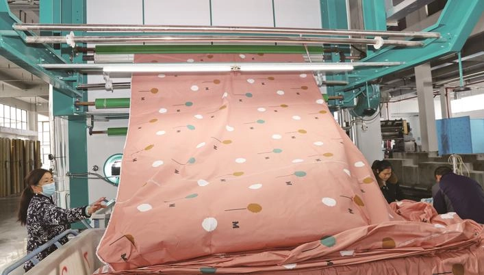 Nantong Patney Textile Technology Co., Ltd., established in May 2020, is located in the Textile Industrial Park of Tongzhou Bay Demonstration Zone. The project covers an area of 52 mu (approximately 3.8 hectares) and mainly engages in the production and sales of high-end functional wide-width fabrics and bedding. Its products are primarily sold to home textile markets and e-commerce platforms throughout China. In 2024, its tax-paying sales reached 240 million yuan. Main production equipment includes advanced domestic pretreatment equipment, dyeing machines, imported Japanese rotary screen printing machines, digital direct-to-garment printing machines from the listed company Honghua, and Haida setting machines. The company has introduced advanced ERP production process management and MES energy management intelligent digital system for the printing and dyeing industry.